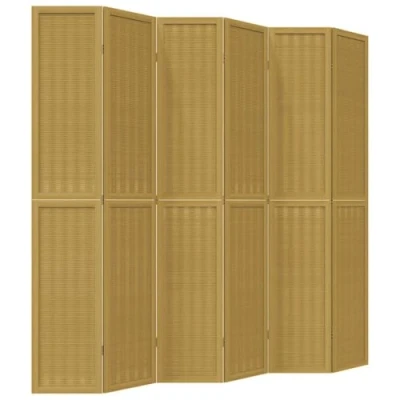 vidaXL Room Divider 6 Panels Brown Solid Wood Paulownia