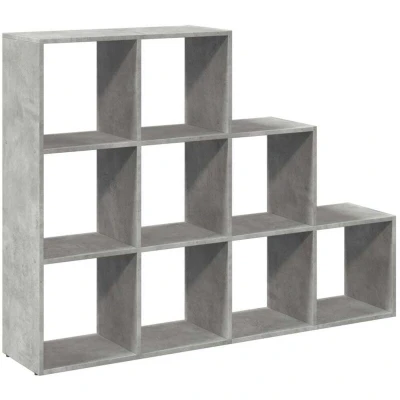 vidaXL Room Divider Bookcase 3 Tier Bookshelf, 9 Cubes, Concrete Grey, Engineered Wood, Sturdy Storage Organizer for Living Room/Bedroom/Study
