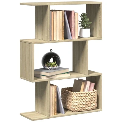 vidaXL Room Divider Bookcase 3 Tier Sonoma Oak Engineered Wood Shelf Geometric Shape Design 70x24x97 cm