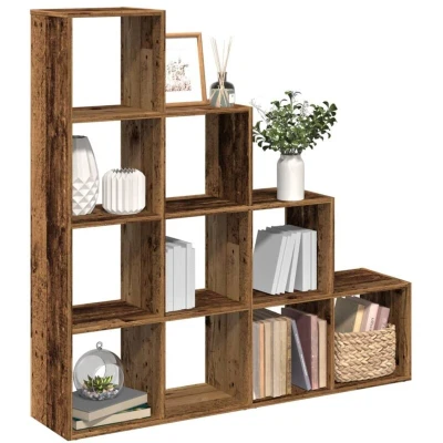 ManoManoGeneral description The 4-Tier Room Divider Bookcase is designed to enhance your space while providing ample storage. With ten cubic compartments, it is perfect for organizing books, decorations, and other household items. Its versatile design allows it to be used as a room divider, making it suitable for various settings such as the living room, study, bedroom, or basement. Technical specifications Colour: Old wood Material: Engineered wood Overall dimensions: 131.5 x 29 x 131.5 cm (W x D x H) Dimensions of each cube: 31 x 29 x 31 cm (W x D x H) Total weight capacity: 100 kg Weight capacity of each cube: 10 kg Assembly required: Yes Installation To prevent tipping, use the provided wall attachment device. Screws and plugs for wall attachment are not included; choose suitable ones for your walls. Follow the assembly instructions carefully. Usage This bookcase can be positioned either horizontally or vertically, allowing for flexible placement in any room. It is ideal for displaying