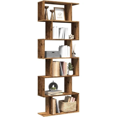 vidaXL Room Divider Bookcase, 6 Tier Shelf, Old Wood, Engineered 70 x 24 193 cm, Versatile Bookshelf, Storage Solution for Living Room/Study/Bedroom