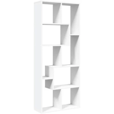 The contemporary room divider bookcase blends a geometric shape design with storage, perfect for organizing your space with style! Stable and durable material: Engineered wood is a durable and stable material with a smooth surface that is resistant to moisture, warping, and splitting, making it a reliable choice for various projects.Ample storage: With compartments of varying sizes, this shelf offers flexible storage options for items of different shapes and sizes.Flexible placement options: The shelving unit can be positioned with either its width or height on the ground, offering versatile room layout options.Versatile applications: The shelving unit can also be used as a room divider, easily fitting into any style of room. You can place it in the living room to display decoration, in the study to store books and documents, in the bedroom to store everyday items, and in the basement to store bits and bobs.Easy maintenance: Thanks to its smooth surface, the storage bookcase is easy to clean with a damp cloth and requires less maintenance. Warning:To prevent it from tipping over, this product must be used with the provided wall attachment device. Good to know:Screws and plugs for inside the wall are not included. We advise to find and use screws and plugs suitable specifically for your walls. If you're not sure, you can consult with a professional. Please read and follow each step of the instructions.