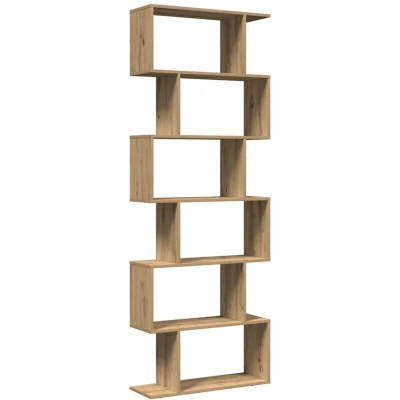 vidaXL Room Divider Bookcase Bookshelf 6 Tier Artisan Oak Engineered Wood Geometric Design Living Room, Study, Bedroom