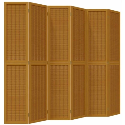 vidaXL Room Divider Privacy Screen 6 Panel Brown Solid Paulownia Wood/Bamboo Folding Partition for Office/Living Room/Bedroom