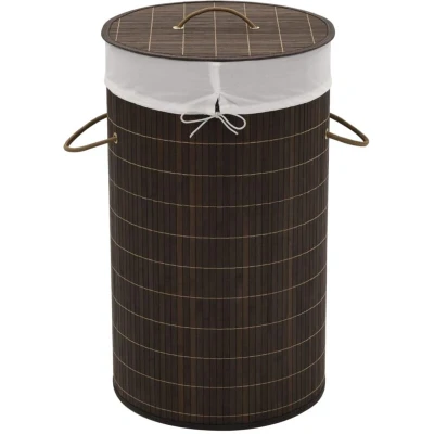 vidaXL Round Bamboo Laundry Bin Dark Brown, Removable Polyester Inner Bag, Portable with Handles, Foldable, Multifunctional Storage Solution