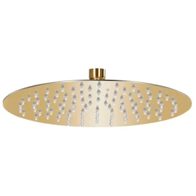 ManoManoGeneral description This shower head makes a great addition to any bathroom. It is equipped with a large number of nozzles, which scatter the water over a wide area for a truly relaxing rain shower experience. The silicone nozzles ensure that any limescale deposits are always easy to clean, and the swivel joint allows you to adjust the spray angle. Technical specifications Colour: Gold Material: Stainless steel, silicone Diameter: 25 cm Shape: Round Anti-limescale nozzles Number of nozzles: 105 Can be wall or ceiling mounted Other information