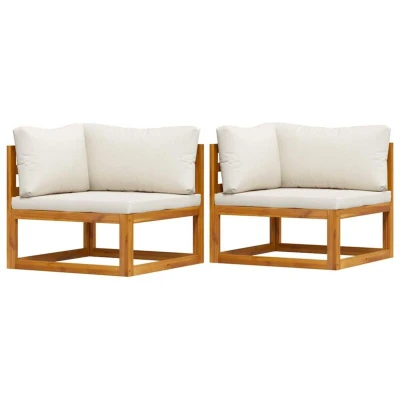 VidaXLThis wooden sectional corner sofas combine style and functionality, and is designed to be used outdoors year-round. Featuring solid acacia wood frame, the sofa set is strong, sturdy and durable; and its oil finish makes the sofa set suitable for outdoor use. The padded seat and back cushions provide the ultimate comfort in your seating experience. You can combine it with other modular segments available to create your own personal garden lounge set configurations!