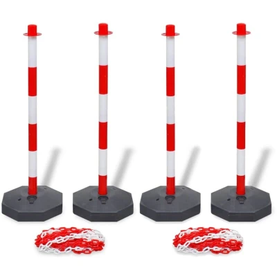 VidaXLThis chain post set, with 4 posts and plastic chain of 20 m in total, is designed as an economical but effective means to cordon off certain areas. It is suitable for car parks, warehouses, public spaces and private roads, etc. The plastic chain can be easily attached to the traffic posts to create a restricted area. The chain posts are light in weight, thus very portable. For added stability, the included base can be filled with water or sand. The bright red and white colours make the traffic post set highly visible.