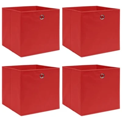 【Convenient Design】: Equipped with a handy metal eyelet, these storage boxes easily pull out from wardrobes, cabinets, or shelves, simplifying your organization process 【Bold & Vibrant】: These vidaXL storage boxes in eye-catching red fabric optimize organization, ideal for storing garnishes like scarves, socks, and underwear 【Durable Material】: Crafted from non-woven 100% polyester fabric, these storage boxes promise long-lasting use, adding a robust storage solution to your wardrobe 【Multiple Units】: This product comes with 4 storage boxes, each measuring 32x32x32 cm, offering ample room to house various items and keep your spaces tidy 【Space-saving】: Showcasing a foldable design, these storage boxes can be folded flat when not in use, conserving your valuable space effectively