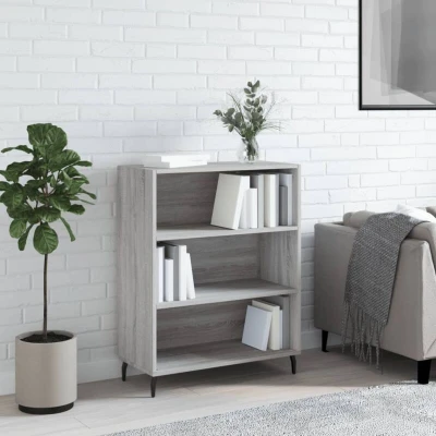 ManoManoGeneral description This modern shelf cabinet, featuring a timeless look, is an excellent addition to your home. It is designed with durability and style in mind, making it a perfect storage solution. Technical specifications Colour: Grey sonoma Material: Engineered wood, metal Overall dimensions: 69.5 x 32.5 x 90 cm (L x W x H) Assembly required: Yes Usage Ample storage space with 3 shelves to keep items organized and within easy reach. The stable and sturdy top is perfect for displaying decorative items, picture frames, and potted plants. Other information Warning: To prevent it from being overturned, this product must be used with the provided wall attachment device.
