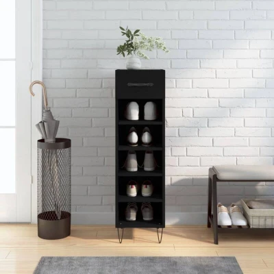 VidaXLKeep your shoes organised and create a tidy environment with this elegant shoe cabinet! Durable material: The engineered wood is of exceptional quality with smooth surface and also features strength, stability and resistance to moisture.Ample storage space: This shoe cupboard has 1 drawer and 5 open compartments, providing ample storage space for all types of shoes.Stable cabinet top: The top of this shoe stand is suitable for placing your favourite decorative items such as vases, potted plants, etc.Practical design: The iron feet add an industrial style to your interior while ensuring stability. The aluminium alloy drawer handle is stylish and durable Warning:To prevent it being overturned, this product must be used with the provided wall attachment device.