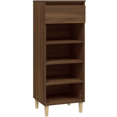 ManoManoGeneral description This compact shoe cabinet is designed to eliminate shoe clutter in your home. Made from high-quality engineered wood, it features a smooth surface that offers strength, stability, and moisture resistance. With ample storage options, including 4 open shelves and 1 drawer, this cabinet can accommodate shoes, storage boxes, and other items. The wooden feet provide a natural look while ensuring stability, making it a perfect fit for any interior decor. The sturdy top is ideal for displaying decorative objects, photo frames, or potted plants. Technical specifications Colour: Brown oak Material: Engineered wood, solid eucalyptus wood Dimensions: 40 x 36 x 105 cm (W x D x H) Installation Each product comes with an assembly manual in the box for easy assembly. To prevent overturning, this product must be used with the wall attachment device provided. Other information