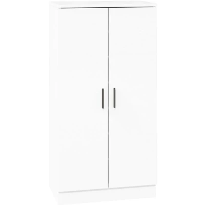 This shoe cabinet is an excellent piece of furniture to relieve you of everyday shoe chaos. It will look great in your hallway, living room, bedroom or any other room. Durable material: The engineered wood is of exceptional quality with smooth surface and also features strength, stability and resistance to moisture. Ample storage space: This shoe rack features 7 compartments, providing ample space to keep your shoes within reach and well organised. Practical door: Keep your essential items free from dust by hiding them behind the door of this shoe storage cabinet. Note: Each product comes with an assembly manual in the box for easy assembly. Warning: In order to prevent overturning, this product must be used with the wall attachment device provided Colour: High gloss white Material: Engineered wood, aluminium Dimensions: 55 x 35 x 108 cm (W x D x H) Storage space for approximately 14 pairs of shoes in total (depending on the size of the shoes) Legal Documents: More details about
