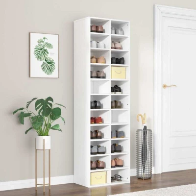 VidaXLKeep your shoes organised and always at hand with our shoe rack! This rack is made of quality engineered wood, which is durable and sturdy for long service life. It is in a simple design, which can fit easily into your existing living space. With ample space of 22 compartments, this rack can accommodate many shoes, storage boxes, hobby utensils, collectibles and more. Wall mounting accessories and a wall anchor to prevent the rack from tipping over are included in delivery. It is easy to clean with damp cloth. The rack is easy to assemble.