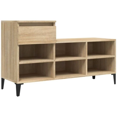 General description Keep your shoes away from dust and cluttering to create a tidy environment with this elegant shoe cabinet! Made of high-quality engineered wood, this cabinet features a smooth surface, strength, stability, and moisture resistance. The modern design is complemented by metal legs that ensure stability while adding a calm style to your interior. Technical specifications Colour: Sonoma oak Material: Engineered wood, metal Dimensions: 102 x 36 x 60 cm (W x D x H) Ample storage space 1 drawer and 6 compartments for organized storage of shoes and other items. Sturdy top surface for displaying decorative objects. Installation The drawer can be installed on the left or right side for flexible use. Each product comes with an assembly manual in the box for easy assembly. Usage This shoe cabinet is perfect for keeping your footwear organized and your living space tidy. It can also serve as a decorative display area for your favorite items. Other information WARNING: To prevent
