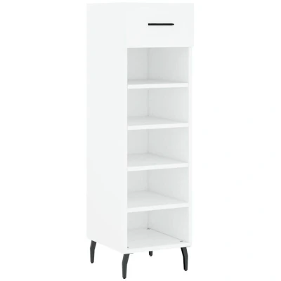 VidaXLKeep your shoes organised and create a tidy environment with this elegant shoe cabinet! Durable material: The engineered wood is of exceptional quality with smooth surface and also features strength, stability and resistance to moisture.Ample storage space: This shoe cupboard has 1 drawer and 5 open compartments, providing ample storage space for all types of shoes.Stable cabinet top: The top of this shoe stand is suitable for placing your favourite decorative items such as vases, potted plants, etc.Practical design: The iron feet add an industrial style to your interior while ensuring stability. The aluminium drawer handle is stylish and durable. Warning:To prevent it being overturned, this product must be used with the provided wall attachment device.