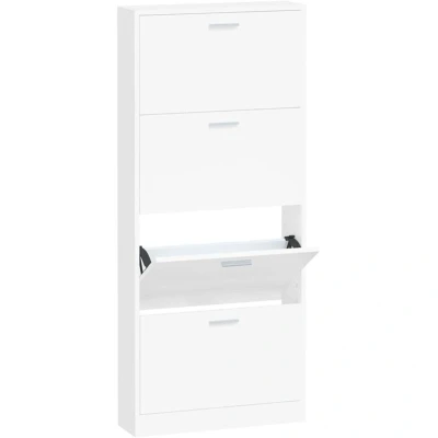This shoe cabinet, in a modern and stylish design, is an excellent piece of furniture to store your shoes in an organised way. It is suitable for the entrance, hallway, living room, bedroom and other places you want it to be. Durable material: The engineered wood is of exceptional quality with smooth surface and also features strength, stability and resistance to moisture. Ample storage space: This shoe rack features 4 drawers, providing ample space to keep your shoes within reach and well organised. Pull-down drawer design: With its pull-down drawer design, this shoe storage cabinet is easy to open and close. Note: Each product comes with an assembly manual in the box for easy assembly. Warning: In order to prevent overturning, this product must be used with the wall attachment device provided Colour: White Material: Engineered wood Dimensions: 59 x 17 x 150 cm (W x D x H) Drawer height: 31.5 cm Drawer size: 51.5 x 9.5 cm (L x W) Legal Documents: More details about preventing your