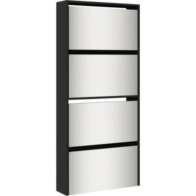 vidaXL Shoe Cabinet with Mirror 4 Layer Black 63x17x134 cm