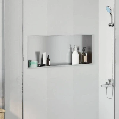 ManoManoGeneral description This Stainless Steel Shower Niche offers a modern solution to elevate your bathroom aesthetics and organization effortlessly. Designed with a sleek, rectangular form, it seamlessly integrates into various bathroom styles, embodying a minimalist charm suited for contemporary interiors. Its stainless steel construction ensures lasting use, providing a refined touch to your daily routine. Technical specifications Colour: Silver Material: Stainless steel Overall dimensions: 75 x 30 x 9.5 cm (L x W x H) Weight: 2.05 kg Storage Compartments: Yes Indoor / outdoor: Indoor only EAN: 8721288740007 SKU: 42012674 Brand: vidaXL Usage Ideal for storing shampoo bottles, soaps, and accessories neatly. Facilitates organization, keeping your shower tools within easy reach while maintaining a tidy and clutter-free environment. Other information