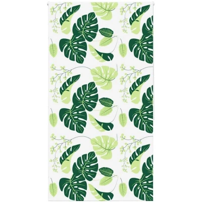 ManoManoGeneral description Elevate your bathroom's style and functionality with this shower roller blind, offering privacy, tidiness, and elegance. Made from water-resistant PEVA material, it is easy to clean and ensures long-term use while providing complete privacy during showers. Technical specifications Material: PEVA (Polyethylene-vinyl acetate) Top rail material: Aluminium Total height: 240 cm Total width: 120 cm Fabric width: 116 cm (tolerance is ±4mm) Window frame thickness range: 1.5-2.5 cm Pattern: Green leaves Assembly required: Yes Compatibility and accessories Multiple assembly options: Can be mounted to the ceiling or wall using screws, or attached directly to the window with clamping brackets. Mounting accessories included. Chain connector for height adjustment. Installation The shower roller blind can be easily installed by following the included instructions. Choose between ceiling or wall mounting using screws, or use clamping brackets for a no-drill option. Usage To ensure