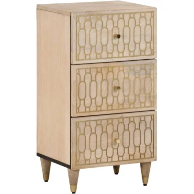 This side cabinet, featuring a timeless look, is meant to be an excellent addition to your home. Solid mango wood: Solid mango wood is a strong, tropical hardwood that makes sturdy furniture. Its beautiful wood grains make every piece of furniture slightly different from the next. Made of solid mango wood, the cabinet is durable and stable.Ample storage space: The cupboard offers ample storage space for keeping your various daily essentials well-organised and within easy reach.Displaying function: The top of the storage cabinet is great for displaying your decorative items, photo albums or small plants.Wooden feet: The wooden feet give the product a natural and pleasant look while ensuring stability. It can blend well with any interior decor.Hand-carved design: This home organiser with hand-carved patterns brings the luxury of elegant charm to your interior, being the focal point of your room. Good to know:Each item is unique with variations in colours and grains. The delivery is random, ensuring the exclusivity and individuality of your product. Warning:To prevent it from tipping over, this product must be used with the provided wall attachment device.