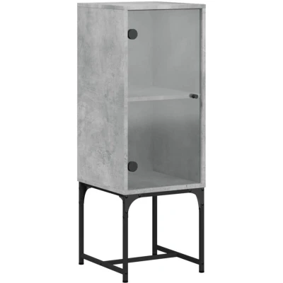 ManoManoGeneral description This side cabinet, featuring a timeless look, is an excellent addition to your home. It offers ample storage space for keeping your daily essentials organized and within easy reach. The top of the cabinet is perfect for displaying decorative items, photo albums, or small plants. The practical glass doors help keep your space clutter-free while allowing you to showcase your items beautifully. Technical specifications Colour: Concrete grey Material: Engineered wood, glass, steel Dimensions: 35 x 37 x 100 cm (W x D x H) Max. load capacity: 60 kg Load capacity of compartment: 30 kg Assembly required: Yes Other information Warning: To prevent it from tipping over, this product must be used with the provided wall attachment device. Images: