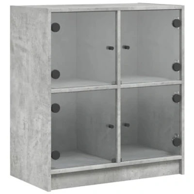 vidaXL Side Cabinet with Glass Doors Engineered Wood Storage Cupboard, Concrete Grey, Modern Display for Living Room/Office 68x37x75.5cm