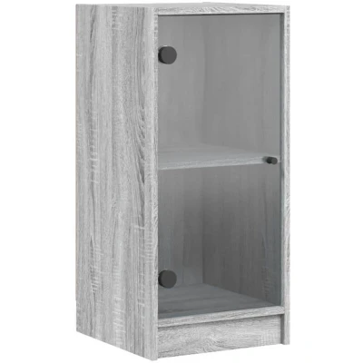 ManoManoGeneral description This side cabinet, featuring a timeless look, is an excellent addition to your home. It offers ample storage space for keeping your daily essentials organized and within easy reach, while the top surface is perfect for displaying decorative items, photo albums, or small plants. The practical glass doors help keep your space clutter-free by hiding small essentials, yet allow you to beautifully display items inside. Technical specifications Colour: Grey sonoma Material: Engineered wood, glass Dimensions: 35 x 37 x 75.5 cm (W x D x H) Max. load capacity: 60 kg Load capacity of compartment: 30 kg Assembly required: Yes Other information Warning: To prevent tipping, this product must be used with the provided wall attachment device. SKU: 836404