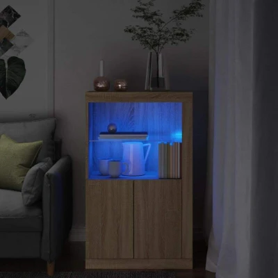 vidaXL Side Cabinet with LED Lights Sonoma Oak Engineered Wood