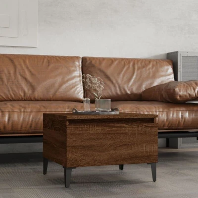 General description Give your living room a unique industrial makeover with this stylish side table. The engineered wood construction offers exceptional quality with a smooth surface, ensuring strength, stability, and resistance to moisture. This side table features a spacious drawer for organized storage of your everyday essentials, while the practical top provides a secure surface for snacks, drinks, vases, fruit bowls, or other decorative items. The metal feet add a calm style to your interior while ensuring stability. Technical specifications Colour: Brown oak Material: Engineered wood, metal Dimensions: 50 x 46 x 35 cm (L x W x H) Installation Each product comes with an assembly manual in the box for easy assembly. Other information