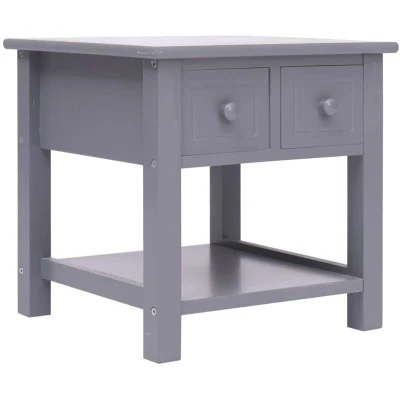 General description Our wooden side table is a practical and decorative addition to your interior. It can be used as a telephone stand, bedroom cabinet, or for other purposes. Made of durable paulownia wood and MDF, this coffee table features storage space with 2 drawers and a bottom shelf. The sturdy tabletop is perfect for displaying decorative objects, photo frames, or potted plants. It is easy to clean with a damp cloth and simple to assemble. Technical specifications Colour: Grey Material: Paulownia wood + MDF tabletop Dimensions: 40 x 40 x 40 cm (W x D x H) With 2 drawers SKU: 284069 Other information