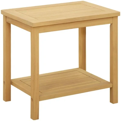 This Garden Side Table, meticulously crafted from solid acacia wood, serves as a versatile accent for any space, offering both durability and rustic charm. Its rugged style brings a touch of natural beauty to gardens, patios, backyards, and even indoor settings, while its sleek design complements modern and traditional decor alike. Ideal for those looking to add functional elegance to their surroundings, this table supports beverages, books, and decorative items with a robust yet stylish appearance. Materials: This table is crafted entirely from solid acacia wood, known for its resilience and attractive grain patterns. The use of this material ensures enduring performance, making the table capable of withstanding daily wear without losing its charm. The natural brown hues of the wood add warmth and character, seamlessly fitting into rustic and contemporary environments. Included Components: Designed with board shelves and a solid acacia frame, this table offers reliable support for your essentials. The post leg, also made from solid acacia wood, complements the structural integrity of the piece, ensuring stability and longevity. Its practical design enhances usability, making it an accessible addition to any setup. Features /Function /Design: The rustic style of this side table blends effortlessly with both indoor and outdoor spaces, offering a versatile design that meets aesthetic and functional needs. Durable construction ensures it remains a fixture whether stationed by the poolside, in the garden, or within the cozy corners of a living room, embodying function and form. Recommended Uses: Perfect for patios, gardens, or poolside setups, this side table serves as an ideal platform for leisurely afternoons or social gatherings. Its understated look allows for incidental use, from holding refreshments to showcasing potted plants, making it invaluable for hosts or nature enthusiasts. Care &Maintenance: Maintaining the table's pristine appearance is straightforward. Simply wipe it with a damp cloth to remove dust and debris, preserving its natural sheen. For longevity, shield it during adverse weather conditions, safeguarding this investment for seasons to come.
