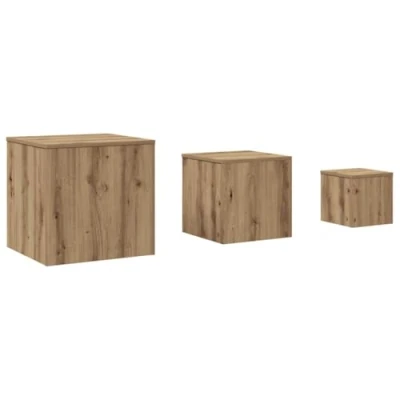 ManoManoGeneral description An essential part of every living space, these classic side tables come in three different sizes to meet your multiple needs. Made from high-quality engineered wood, they offer strength, stability, and moisture resistance, making them a durable choice for your home. Technical specifications Colour: Old wood Material: Engineered wood Large table dimensions: 45 x 45 x 45 cm (L x W x H) Medium table dimensions: 35 x 35 x 35 cm (L x W x H) Small table dimensions: 24 x 24 x 24 cm (L x W x H) SKU: 856676 Usage These couch tables can be used in the living room to rest drinks or other necessities. They can also serve as unique nightstands in the bedroom. Easy to clean with a damp cloth. Other information