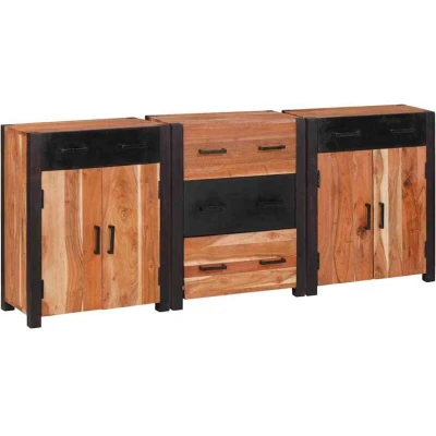 vidaXL Sideboard 3 pcs Brown 165 x 30 75 cm Solid Acacia wood