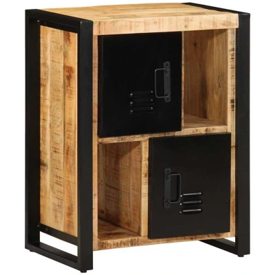 ManoManoGeneral description This classic sideboard, featuring a timeless look, is an excellent addition to your home. Made from solid mango wood, a robust tropical hardwood, it offers exceptional durability and strength. Each piece showcases beautiful wood grains, making every item unique. Technical specifications Material: Solid rough mango wood, iron Dimensions: 55 x 35 x 70 cm (L x W x H) Assembly required: Yes Usage Ample storage space for keeping your daily essentials organized and within easy reach. The top of the sideboard is ideal for displaying decorative items, photo albums, or small plants. Practical doors keep your essentials free from dust. Other information Warning: To prevent tipping, this product must be used with the provided wall attachment device. Each item is unique with variations in colors and grains, ensuring the exclusivity of your product.