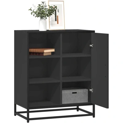 ManoManoGeneral description This modern sideboard, featuring a timeless look, is an excellent addition to your home. The metal frame enhances your interior with an industrial style while providing exceptional durability, stability, and resistance to corrosion. The engineered wood material is durable and stable, with a smooth surface that is resistant to moisture, warping, and splitting, making it a reliable choice for various projects. The buffet offers ample storage space for dining essentials and other household items, keeping them organized and within reach. Practical handles provide a comfortable grip for easy opening and closing, adding extra beauty to the design. This side cabinet can be used as a bathroom cabinet, kitchen cupboard, or elegant storage solution in bedrooms, powder rooms, entryways, corridors, offices, dining rooms, and other living areas. Technical specifications Colour: Black Material: Engineered wood, metal Dimensions: 62 x 35 x 76 cm (W x D x H) Maximum weight