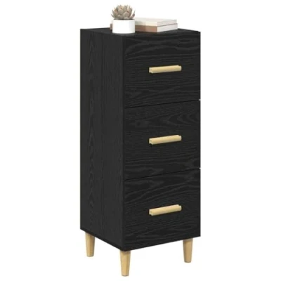 ManoManoGeneral description This sideboard in black oak is a must-have for living or dining areas, adding a dash of style and function. It features a modern design with clean lines and minimal decorations, made from durable engineered wood that provides a unique textured finish suitable for various styles. Technical specifications Colour: Black oak Material: Engineered wood Overall dimensions: 34.5 x 34 x 90 cm (L x W x H) With drawer Assembly required: Yes EAN: 8721288906755 SKU: 880936 Brand: vidaXL Included Components 1 x Sideboard Drawers made from engineered wood with bar-style handles for easy use Care & Maintenance Easy to maintain; simply wipe with a damp cloth to dust off and keep it looking fresh. Other information