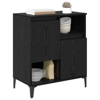ManoManoGeneral description This stylish sideboard is perfect for your living or dining room, seamlessly blending with modern decor. Its rectangular shape and matte finish add a touch of elegance, while its versatility allows for both decorative and essential storage. Technical specifications Colour: Black oak Material: Engineered wood Overall dimensions: 60 x 35 x 70 cm (L x W x H) With 2 doors Assembly required: Yes EAN: 8721288909619 SKU: 881262 Brand: vidaXL Included Components Secure hinge doors for easy access Interior shelves made from engineered wood Square metal legs for solid support Care & Maintenance Wipe surfaces with a dry cloth to maintain appearance Avoid harsh chemicals or abrasives that could damage the finish Regular care helps keep it a standout piece in your home Other information