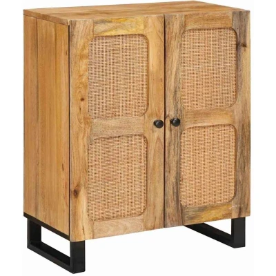This sophisticated sideboard offers a touch of modern finesse in any dining or living space with its smooth lines and contemporary aesthetic. Conceived with both style and function in mind, its rectangular shape promises not just a delightful appearance but a coveted storage solution. Whether you wish to use it for organizing dinnerware, holding magazines, or even storing accessories, this modern sideboard meets every need thanks to its efficient design and detailed craftsmanship. Premium Materials: Crafted from a combination of solid mango wood and engineered wood, this sideboard ensures longevity and resistance to daily wear. The natural wood variations within the mango wood contribute to its unique character, ensuring each unit is distinct while boasting a stable and robust construction. Functional Components: Featuring hinge doors with complementary knobs, the sideboard conveniently opens to unveil ample interior space. This section is perfect for dining room essentials or everyday utilities, allowing a seamless organizational experience. The metal legs assure stability, enhancing the piece's modern style. Versatile Design: With its rectangular form, the sideboard seamlessly adapts to various interior styles, either as a standalone piece or part of a broader design theme. The model aligns with the modern aesthetic but offers enough flexibility to harmonize with a wide array of decor. Recommended Uses: Ideally suited for dining rooms or living spaces, this unit accommodates diverse item requirements, from crockery to living room essentials, exhibiting its adaptability in varied settings. Perfect for homeowners prioritizing design and functionality. Maintenance Guidelines: Maintain this sideboard's beauty by wiping surfaces gently. It requires minimal upkeep for sustained aesthetic appeal and structure. Avoid using abrasive cleaners which may damage its finish.