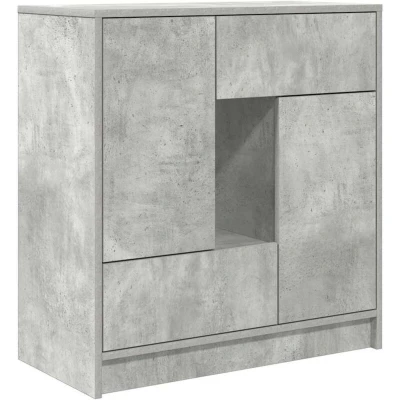 ManoManoGeneral description The sideboard offers versatile storage solutions, keeping your space tidy and organized while adding both practicality and aesthetics to your living space. It features doors and drawers, ensuring your items are well-organized and tidy. The cabinet doors provide enclosed storage to protect your belongings, while the drawers offer easy access to various items. The robust tabletop serves as a reliable surface for displaying essentials, making it ideal for everyday use. Technical specifications Colour: Concrete grey Material: Engineered wood Dimensions: 70.5 x 34 x 74.5 cm (W x D x H) Drawer dimensions (each): 41 x 28.5 x 17 cm (W x D x H) Number of doors: 2 Number of drawers: 2 Overall max. weight capacity: 60 kg Max. weight capacity of top surface: 20 kg Max. weight capacity per drawer: 5 kg Assembly required: Yes Usage Perfect for any room, serving as a stylish storage solution in the living room, a functional addition to the dining area, or a practical organizer