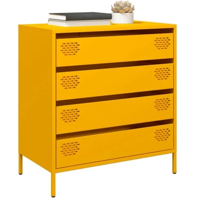 vidaXL Sideboard Cabinet Cupboard Highboard Mustard Yellow Cold Rolled Steel, 68x39x73.5 cm Modern Storage Solution for Home & Office