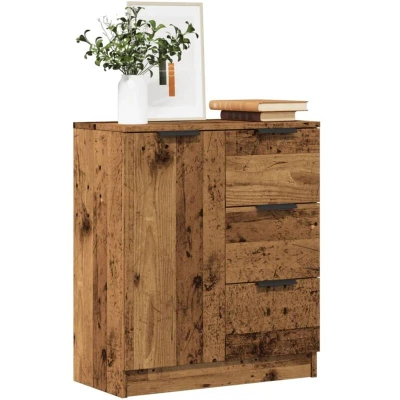 vidaXL Sideboard Cabinet Old Wood Finish Engineered Wood, 60x30x70 cm Storage Unit with 3 Drawers & 2 Compartments for Living Room, Dining Corridor