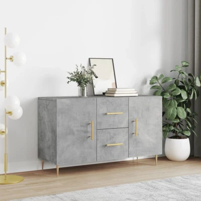 This modern sideboard, featuring a timeless look, is meant to be an excellent addition to your home. Durable material: The engineered wood is of exceptional quality with smooth surface and also features strength, stability and resistance to moisture. Metal legs: The metal legs add a modern and calm style to your interior while ensuring stability. Ample storage space: The sideboard cabinet offers ample storage space for keeping your various daily essentials well organised and within easy reach. Stable and sturdy top: The top of the cupboard is perfect for displaying your decorative items, picture frames, and potted plants. Practical doors: Keep your essentials free from dust by hiding them behind the doors. In addition, the handles on the doors and drawers make it easy to open the storage cabinet. Warning: To prevent it being overturned, this product must be used with the provided wall attachment device. Colour: Concrete grey Material: Engineered wood, metal Overall dimensions: 100 x