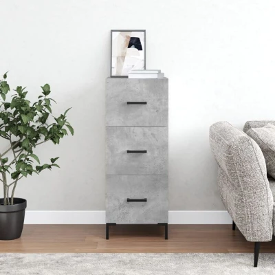 ManoManoGeneral description This modern sideboard, featuring a timeless look, is an excellent addition to your home. Technical specifications Colour: Concrete grey Material: Engineered wood, metal Overall dimensions: 34.5 x 34 x 90 cm (L x W x H) Assembly required: Yes Usage Ample storage space with 3 drawers to keep things organized and within easy reach. Stable and sturdy top, perfect for displaying decorative items, picture frames, and potted plants. Other information Warning: To prevent it from being overturned, this product must be used with the provided wall attachment device. SKU: 828608