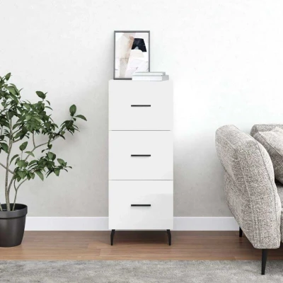 ManoManoGeneral description This modern sideboard, featuring a timeless look, is an excellent addition to your home. It is designed with durability and style in mind, making it a perfect storage solution. Technical specifications Colour: High gloss white Material: Engineered wood, metal Overall dimensions: 34.5 x 34 x 90 cm (L x W x H) Assembly required: Yes Usage Ample storage space with 3 drawers to keep things organized and within easy reach. The stable and sturdy top is perfect for displaying decorative items, picture frames, and potted plants. Other information Warning: To prevent it from being overturned, this product must be used with the provided wall attachment device. Images: