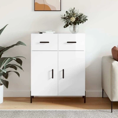 ManoManoGeneral description This modern sideboard, featuring a timeless look, is an excellent addition to your home. It combines functionality with style, making it perfect for organizing your daily essentials. Technical specifications Colour: High gloss white Material: Engineered wood, metal Overall dimensions: 69.5 x 34 x 90 cm (L x W x H) Assembly required: Yes Usage Ample storage space for keeping various daily essentials organized and within easy reach. The stable top is perfect for displaying decorative items, picture frames, and potted plants. Practical doors keep your essentials free from dust, while the handles make it easy to open the storage cabinet. Other information Warning: To prevent it from being overturned, this product must be used with the provided wall attachment device. SKU: 827990