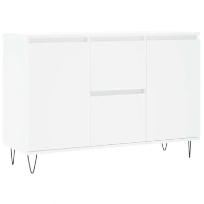 General description This trendy sideboard, featuring a timeless look, is an excellent addition to your home. Made from high-quality engineered wood, it offers durability and a smooth surface, ensuring strength, stability, and resistance to moisture. The sideboard is easy to clean with a damp cloth and provides ample storage space for organizing your daily essentials. The top surface is perfect for displaying decorative items, picture frames, and potted plants. The sturdy iron legs ensure stability and support. Technical specifications Colour: White Material: Engineered wood, iron Dimensions: 101.5 x 35 x 70 cm (W x D x H) Assembly required: Yes Other information Warning: To prevent it from being overturned, this product must be used with the provided wall attachment device. SKU: 827204