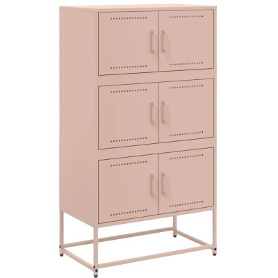 ManoManoGeneral description This sturdy sideboard with an industrial style makes a timeless addition to your living room or bedroom. It features a robust and stable steel frame, providing durability and strength for various applications. The sideboard cabinet includes 6 compartments, offering ample storage space to keep your daily essentials organized and easily accessible. The practical doors help maintain a clutter-free environment by concealing your items. Technical specifications Colour: Pink Material: Steel Dimensions: 68.5 x 38.5 x 123.5 cm (L x W x H) Assembly required: Yes SKU: 846489 Usage Easy to clean with a damp cloth, requiring minimal maintenance. To prevent tipping, use the provided wall attachment device. Other information