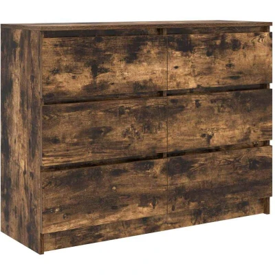 ManoManoGeneral description Featuring minimalist charm, this sideboard will satisfy your various requirements and serve as an ideal complement in your room. The buffet offers ample storage space for dining essentials and other household items, keeping them organized and within reach. With a sturdy tabletop, you can display decorative items, photo albums, or small plants. This versatile side cabinet can be used as a bathroom cabinet, kitchen cupboard, or elegant storage solution in bedrooms, powder rooms, entryways, corridors, offices, dining rooms, and other living areas. Thanks to its smooth surface, the cabinet is easy to clean with a damp cloth and requires minimal maintenance. Technical specifications Colour: Smoked oak Material: Engineered wood Overall dimensions: 100 x 35 x 76 cm (W x D x H) Assembly required: Yes Other information Warning: To prevent it from tipping over, this product must be used with the provided wall attachment device.