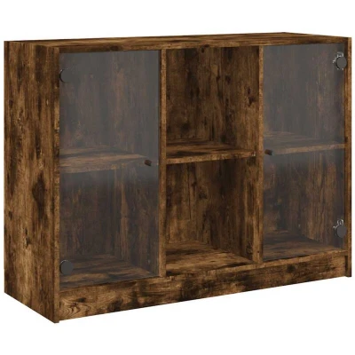 This sideboard provides an ideal solution for organising your books and will add a touch of modern charm to your interior. Durable and sturdy material: The engineered wood is of exceptional quality with smooth surface and also features strength, stability and resistance to moisture. Ample storage space: The side cabinet offers ample storage space for keeping your collection of books, magazines, and documents in good order. Stable and sturdy top: The top of the storage cabinet is perfect for displaying your decorative items, picture frames, and potted plants. Practical design: Keep your essentials free from dust by hiding them behind doors. In addition, the black handles make it easy to open the side cabinet. Warning: To prevent it from tipping over, this product must be used with the provided wall attachment device. Colour: Smoked oak Material: Engineered wood, glass Dimensions: 102 x 37 x 75.5 cm (W x D x H) Compartment dimensions: 32 x 37 x 32 cm (W x D x H) Number of compartments: